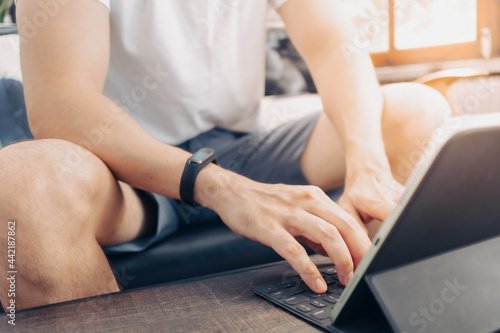© Sevendeman, Fototapeta premium Business man working with tablet in the cafe.