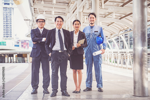© Noey smiley, Obraz premium business manager and engineer meeting project at construction site