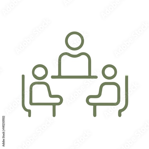Fototapeta premium Business meeting icon — green outline teamwork and collaboration symbol for office and management