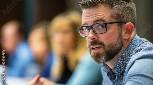 © pisan thailand, Fototapeta premium Business meeting on loveconnected ideas office setting professional discussion collaborative environment engaging viewpoint