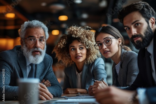 © Pooja, Fototapeta premium Business partners using touchscreen computer for project discuss, Generative AI