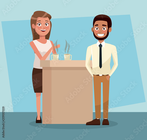 © Jemastock, Obraz premium Business people drinking coffee and talking vector illustration graphic design