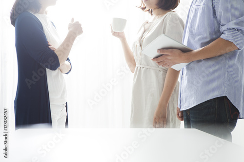 © Monet, Fototapeta premium Business people drinking coffee in break time in the office