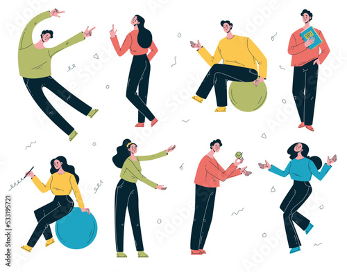 © Irina, Obraz premium Business people office workers characters team managers design element abstract line art set