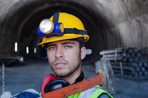 © KOTO, Fototapeta premium Business people reading blueprints in quarry