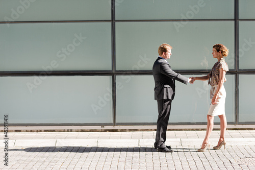 © KOTO, Fototapeta premium Business people shaking hands outdoors