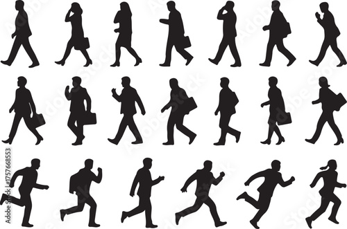 © chhaifunnahar, Obraz premium Business People Silhouettes Walking and Running Illustration