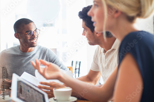 © Sam Edwards/KOTO, Obraz premium Business people talking at meeting in cafe