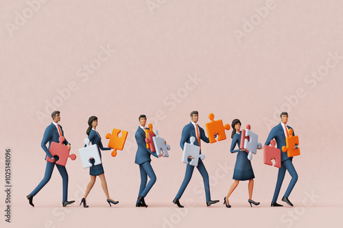 Obraz premium Business people waking with puzzles, solving problems, support concept 3D...