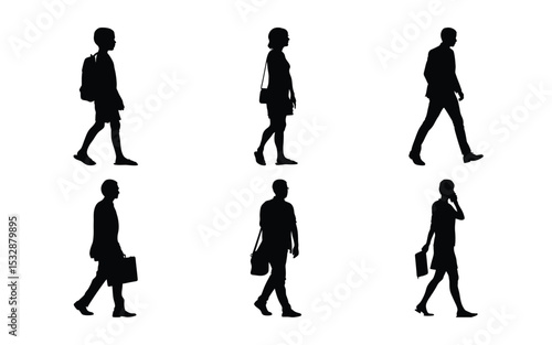 © MD Abdul, Fototapeta premium Business people walking silhouettes set