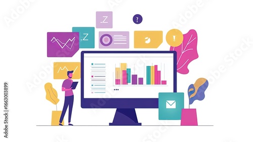 © K.Stock777888, Fototapeta premium business people with graphs and icons vector illustration