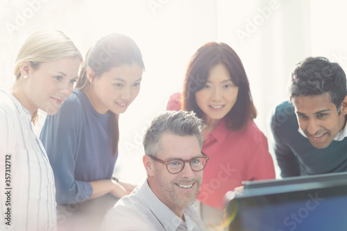 © Tom Merton/KOTO, Fototapeta premium Business people working at computer in sunny office