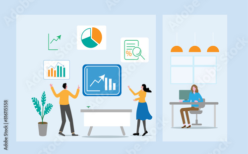 © Vector Elements, Fototapeta premium Business people working for data analytics and monitoring on web report. Business finance investment design concept.