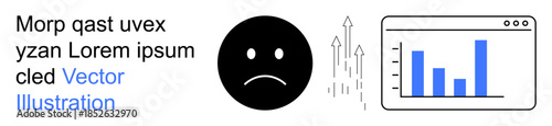 © robu_s, Fototapeta premium Business performance, analytics, data trends, emotions, finance, economy. A sad face next to a data chart with declining bars. Business performance and analytics concept
