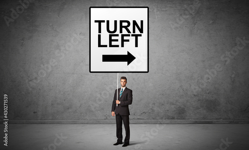 © ra2 studio, Obraz premium business person holding a traffic sign
