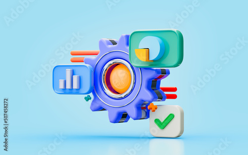 © TanzimGraphicsZone, Fototapeta premium business pie chart cogwheel 3d illustration profit growth setting configuration connection