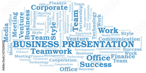 © sharafmaksumov, Obraz premium Business Presentation word cloud. Collage made with text only.