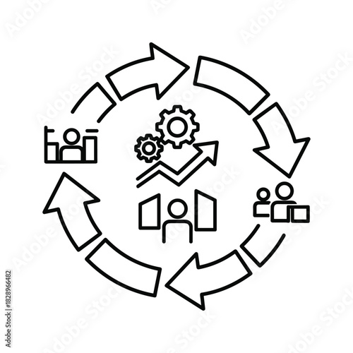 © Mst, Fototapeta premium Business process cycle with people, gears, and growth chart icon