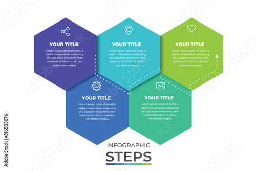 © MrGraphics1990, Fototapeta premium Business process infographic template. Five colourful graphic with numbers 5 steps. Vector illustration graphic design