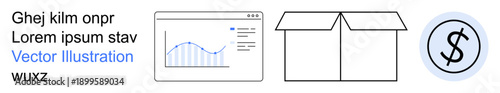 © robu_s, Obraz premium Business processes, data analytics, shipping, finance, e-commerce, packaging solution. A graph, open box and dollar icon convey analytics and commerce. Data analytics and shipping concept