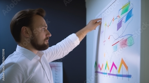 © Elina, Fototapeta premium Business professional analyzing data charts and graphs on a presentation board during a workplace meeting