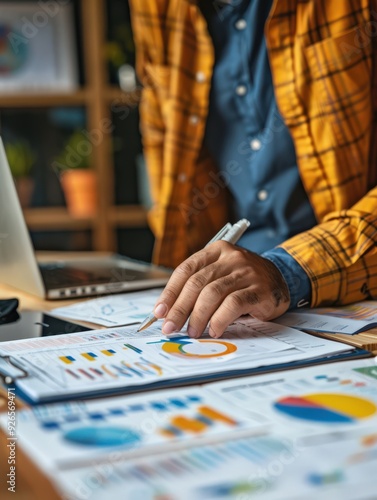 Fototapeta premium Business Professional Analyzing Financial Reports and Data Charts in a Modern Office Setting