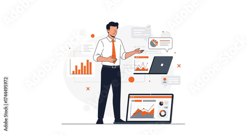 © Muhammad, Fototapeta premium Business professional presents data analysis and insights on a laptop screen illustration