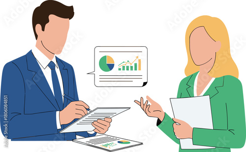 Fototapeta premium Business professionals discussing charts, teamwork collaboration with data...