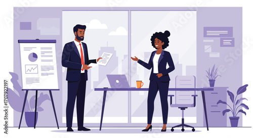 © Firman Dasmir, Fototapeta premium Business professionals discussing strategy and reviewing documents in office space