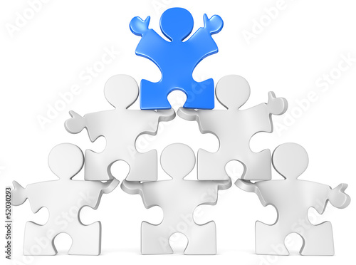 © jojje11, Obraz premium Business Pyramid.Puzzle people x 6 in Pyramid Formation. Blue.