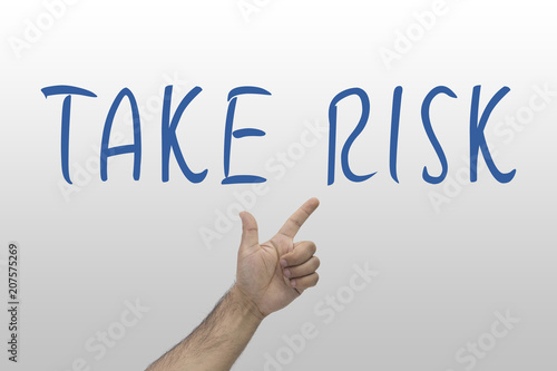 Fototapeta premium Business, risk concept. Hand pointing Take Risk word on whiteboard.