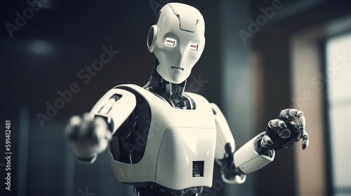 © imagemir, Naklejka premium Business robot pointing space for concept design. Modern abstract connection design illustration. Abstract modern digital background. Ai artificial intelligence concept.
