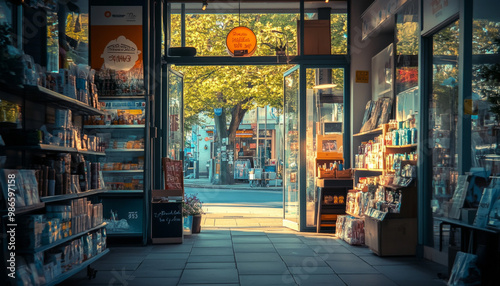 © Thomas Parker, Naklejka premium Business shop during golden hour