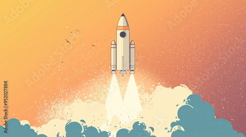 © CreativeVista, Obraz premium Business Startup Concept Illustration Featuring Rocket Launch Representing New Beginnings Ambition and Market Entry