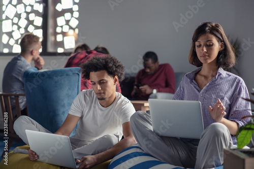 Fototapeta premium business, startup, technology and people concept - happy international...