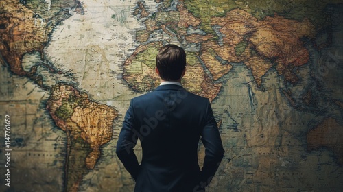 Fototapeta premium Business Strategist Analyzing Global Map for Strategic Planning and Corporate...