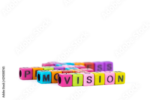 © pookpiik, Obraz premium BUSINESS SUCCESS PROFIT MONEY VISION text made from colorful beads or letter bead on white background, finance and business concept.