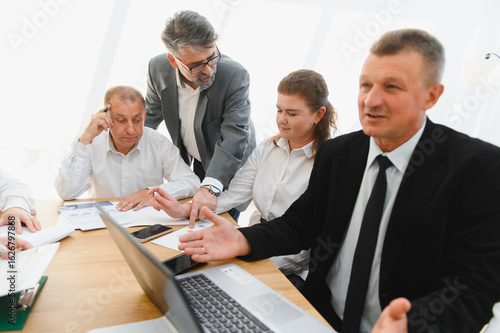 © Serhii, Obraz premium Business team analyzing data and discussing strategy during meeting
