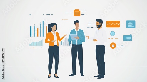 Fototapeta premium Business team analyzing data, office background, project planning, website illustration