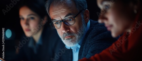 © Priya, Obraz premium Business team collaborating on a project at night