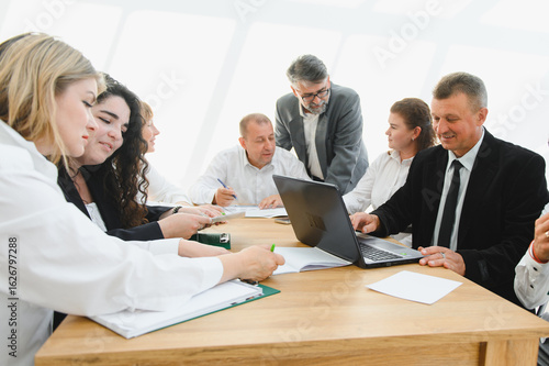 © Serhii, Obraz premium Business team collaborating on project during productive meeting