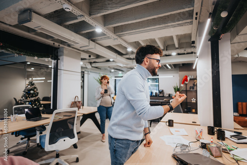 © qunica.com, Fototapeta premium Business team discussing financial growth and market analysis.