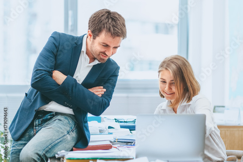 © Suteren Studio, Obraz premium Business team happy after positive feedback