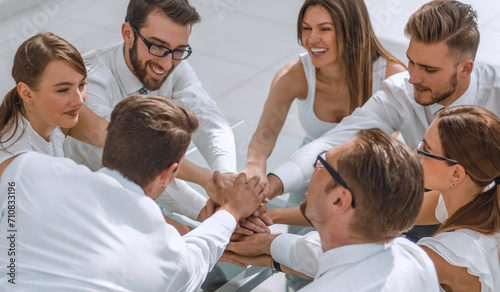 © ASDF, Fototapeta premium business team is making a tower out of hand