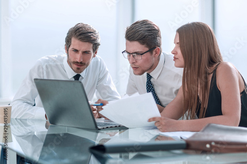 Obraz premium business team looking closely at the laptop screen.