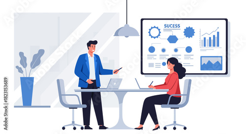 © celana, Obraz premium Business Team Meeting with Presentation and Laptop.