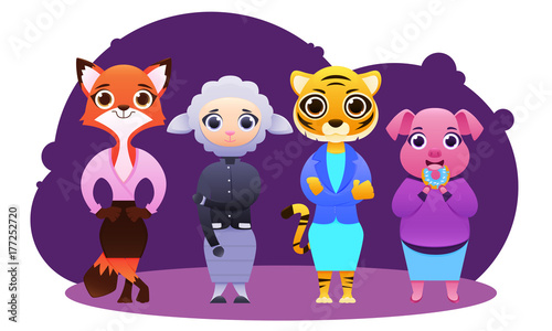 Obraz premium Business team of female animals. Head and staff. Vector illustration