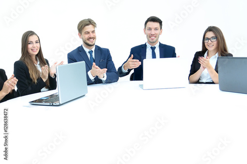 © ASDF, Fototapeta premium Business team, sitting at athe round table on white background.