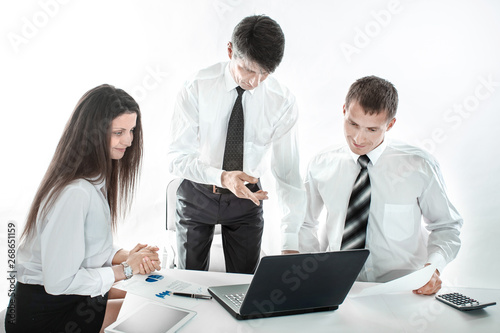 © yurolaitsalbert, Fototapeta premium business team using a laptop in the workplace
