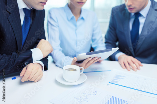 © Syda Productions, Fototapeta premium business team with graph, tablet pc and coffee